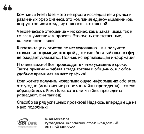 Полная информация об исследовании сложна для представления ее в блоге. Типажи людей в их отношении к своей идентификации, различия по гендеру и профессии, тенденции в «структурных» параметрах – все это можно прочитать в полном отчете. Напишите нам – office@freshidea.pro, и мы с радостью им поделимся. А заодно поможем Вам увидеть новые пути для идентификации себя и своей компании в современном мире.