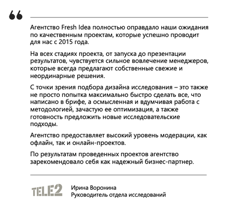 - Мы видим гораздо больше того, что позволяет офлайн со всеми дневниками и домашними заданиями, и даже совместными походами куда-либо. У этого есть несколько причин. Удобство: самостоятельный выбор времени; отсутствие «лишних» людей как модератор или клиент; свобода в выражении мыслей без оглядки на других. Востребованность: модератор реагирует на ответы и комментарии каждого, все видит, всегда на связи. Интерес: замечать в своей жизни моменты, которые ускользают из внимания, интереснее, чем вспоминать их – что требуется в офлайне. В результате мы получаем большую открытость, вовлеченность респондентов в рассказ о себе, как следствие более глубокую и точную информацию для исследователя.
